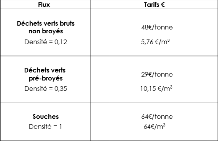Tarifs du dépôt de déchets verts :